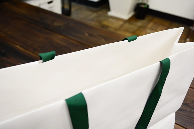 今日ご紹介するのは、白と緑のシンプルな紙袋です!