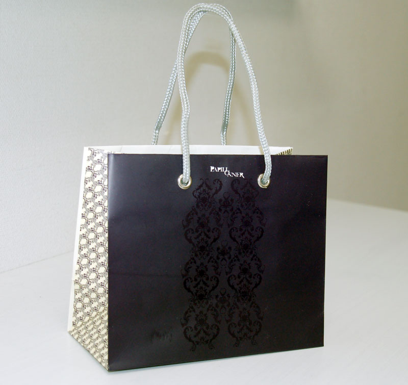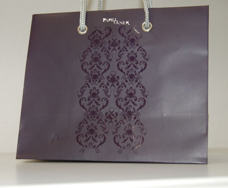 深い紫色のベースに発泡インクで当面感のあるオーナメント柄が印刷されています。