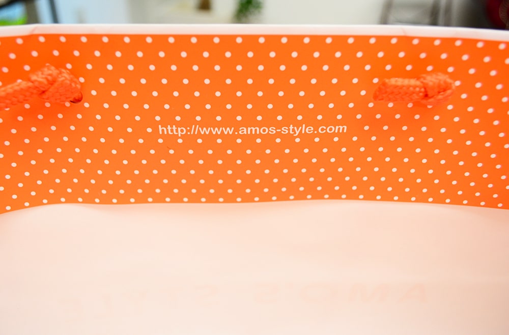 ハンドルは平たいPP紐で、オレンジ色で統一されています。