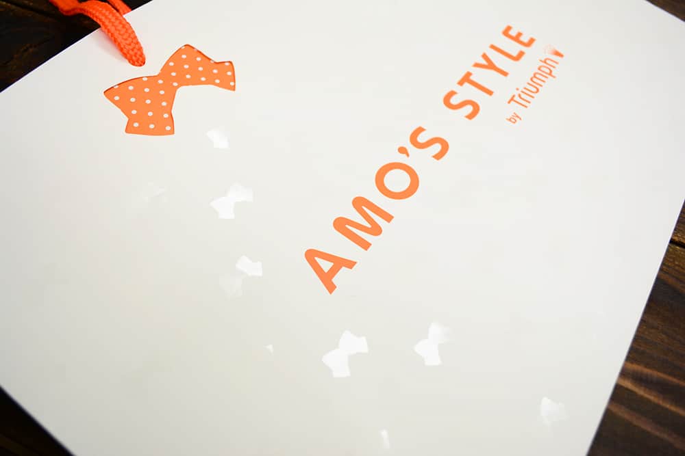 なんと白色の部分全面にUV加工で小さなリボンがデザインされています。