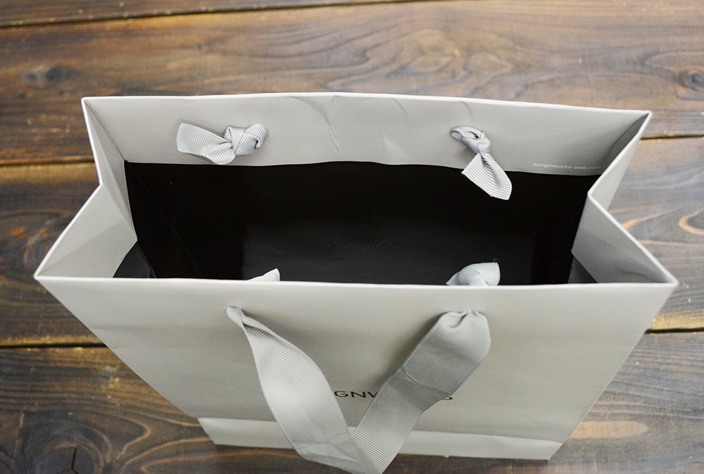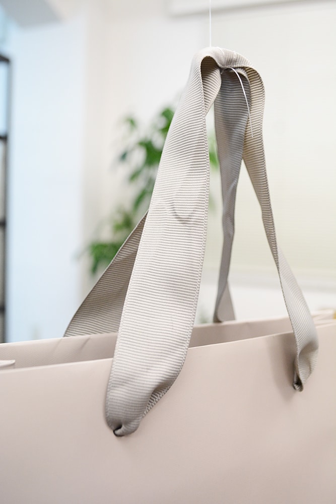 ちょっと高めのアパレルブランドの紙袋なのでコンセプトに合っていますね。