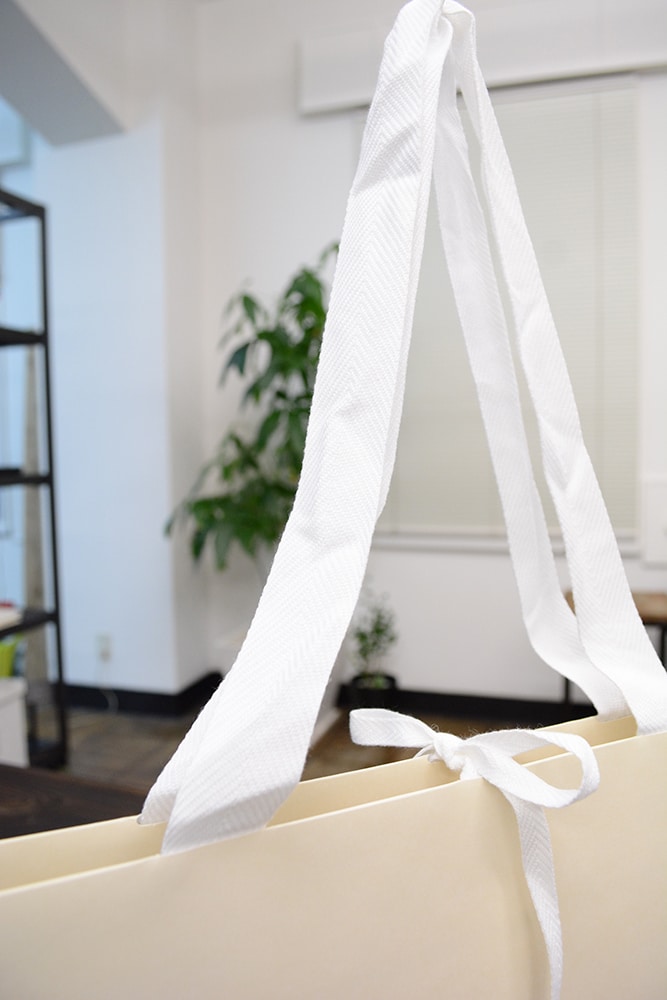 ハンドルは白色の平紐で、
