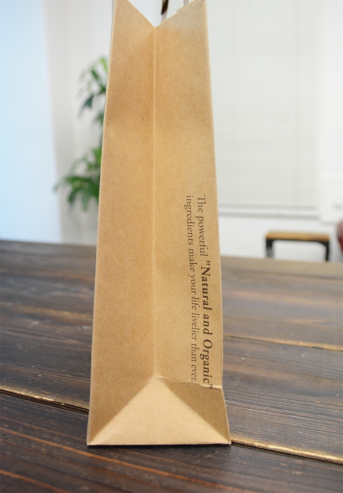 今日ご紹介する紙袋は、オーガニックコスメなどをあつかうお店の紙袋です。