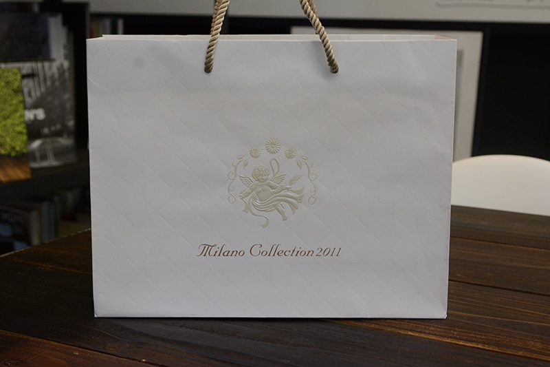 天使がいるハッピーな紙袋2015年03月11日 こんにちはー!大本です。 今回は化粧品メーカーのコスメ製品の紙袋を紹介しますね。 まずは正面から、紙袋の表面エンボス加工され、凸凹な感じになっております。 天使のロゴは浮き出し箔を使用してるようで、手触りはとても◎ そして背面の文字も浮き出し箔を使用しております。 ツイストロープを使用しゴージャスさもUP! りっちな紙袋でした。最後にかわいい天使の顔 をどうぞ♪