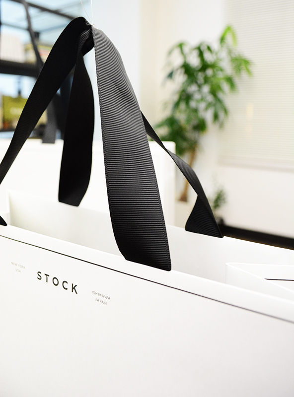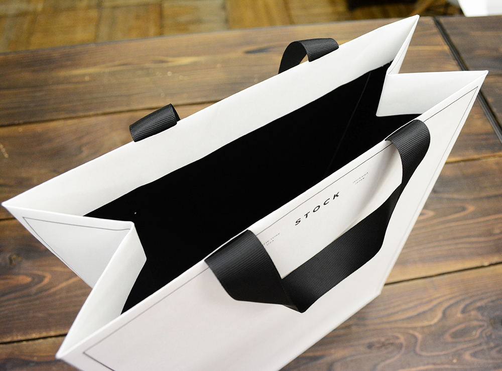 弊社で担当させていただいた、お洒落なメンズセレクトショップ「stock」様の紙袋です。
