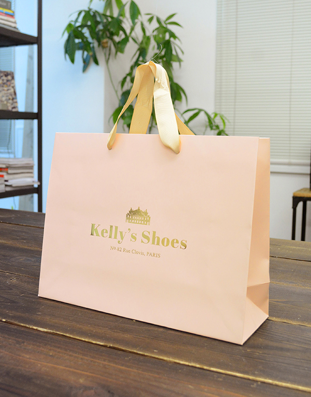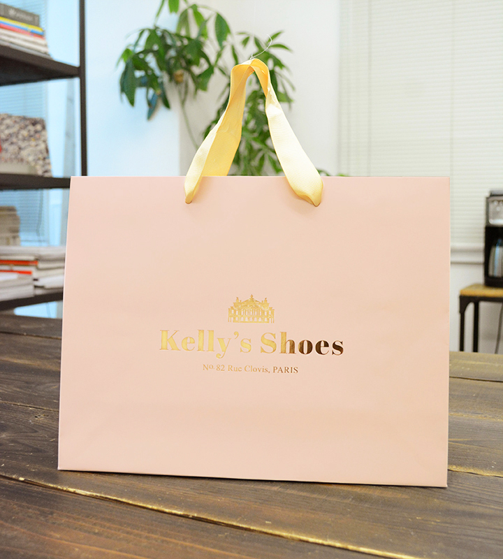 今回はエンボス加工をなくしてツルッとした一般的な紙袋の質感になっています。