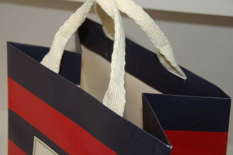 ラグジャーがそのまま紙袋になった感じ2011年11月28日 こんにちはベリービーの芦谷です。 今日は男らしい、ラグジャー(ラグビージャージ)がそのまま紙袋になったような 作品をご紹介致します。 ね、見るからにラグビージャージですよね。 紐もラグジャーの丈夫な襟元をイメージさせられます。 ロゴマークの所は ラベルシールとなって貼られているところが ヨーロッパぽくておしゃれです。 底ボールに印刷されたホームページのURLも何だか 男らしく感じちゃいます。 テーマを持った紙袋って 面白いですね!!
