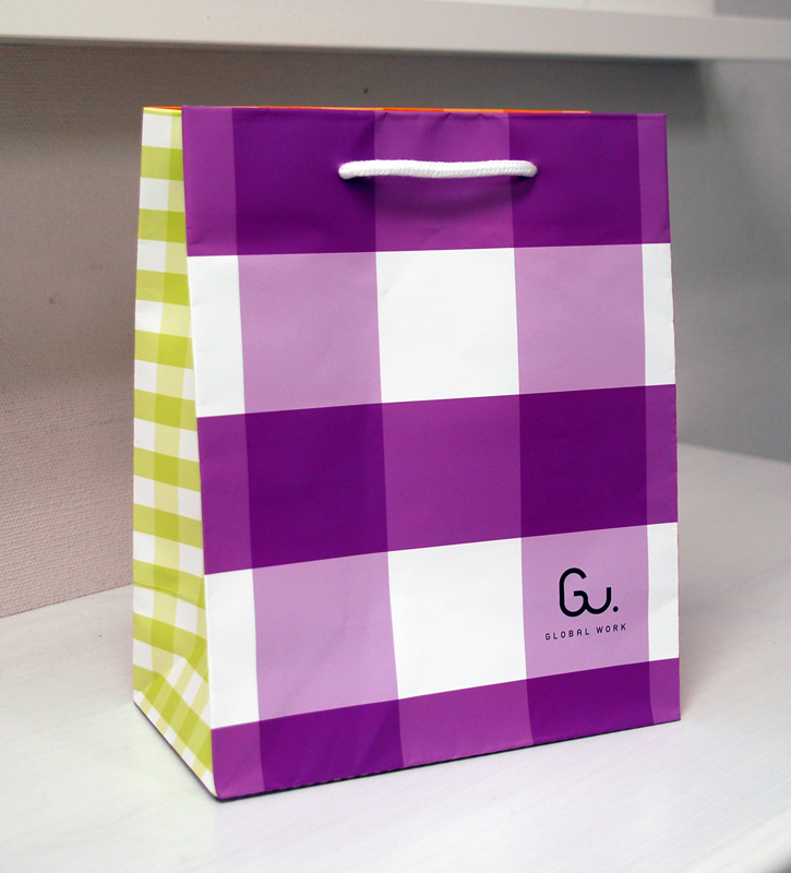 カラーリングがとても素敵な紙袋2011年11月30日 こんにちはベリービーの芦谷です。 今日はとてもカラフルな紙袋をご紹介します。 まず、正面… 横 反対側の正面。 反対側の側面 なんと、底にまで チェックの大きさとカラー違いでまとめたところがおしゃれですね。 とっても目立ってキュートな紙袋です。