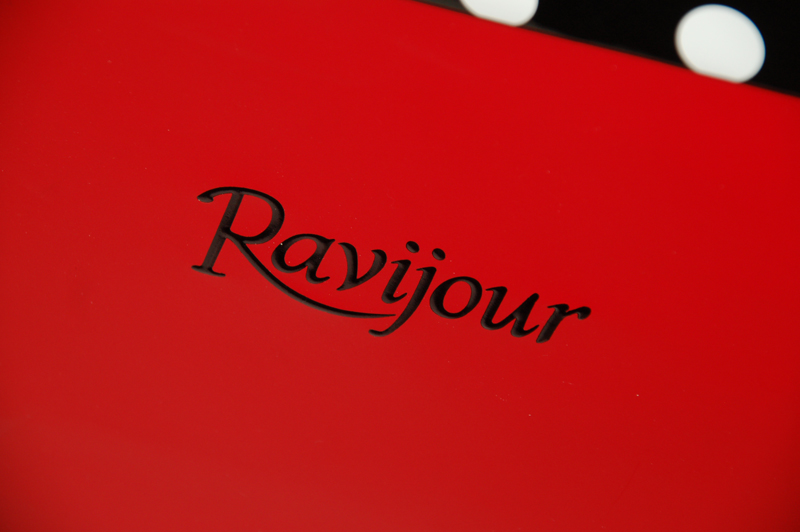 赤パターンの場合、黒の浮きだし箔をロゴに使用しています。