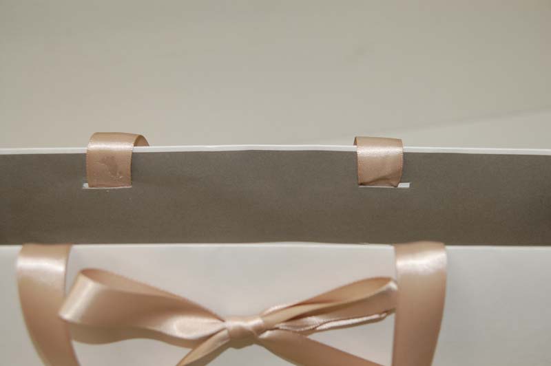 シャンパンゴールドのサテンリボンとマットな白のボディーが上品です。