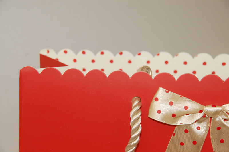正面にはドット柄のかわいいリボンが貼り付けられています。