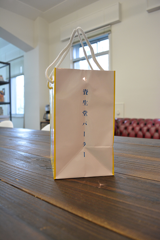 持ち歩くだけで目を引く紙袋なので、よい広告になりそうな紙袋ですね。
