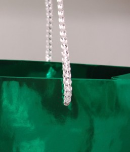 キラキラ!ギラギラのオリジナル紙袋2012年01月17日 こんにちは!! 今日はキラキラ・ギラギラの オリジナル紙袋をお紹介します。 アルミ蒸着紙という紙にグリーンで印刷されています。 ハンドルもキラキラ! どこにでもある仕様ですが 素材を変えるだけでインパクトのある オリジナル紙袋が作れますね!