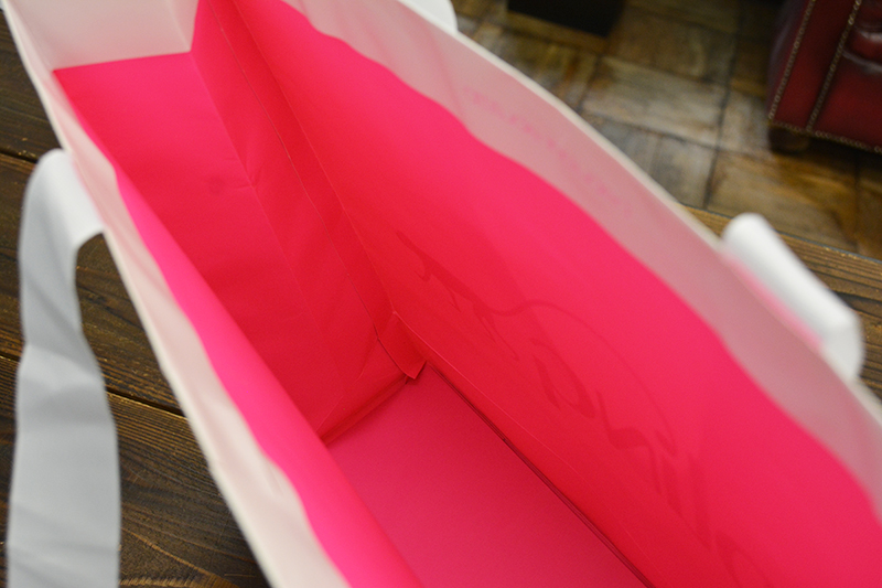 上品なデザインと目を引くピンクのギャップが素敵な紙袋でした。