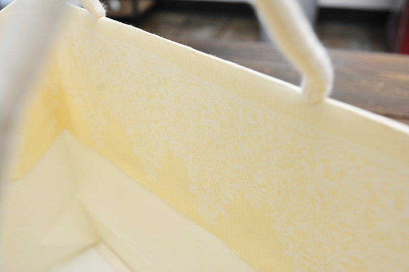 全体的に淡い色でまとめられていて優しいイメージの中に品を感じる紙袋でした。