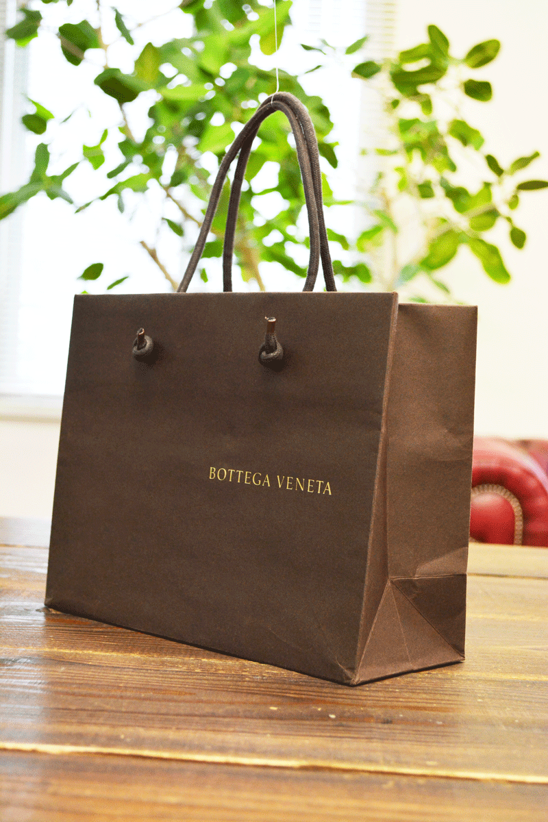 今日ご紹介するのは、レザーの編み込み模様が有名なハイブランドの紙袋です。