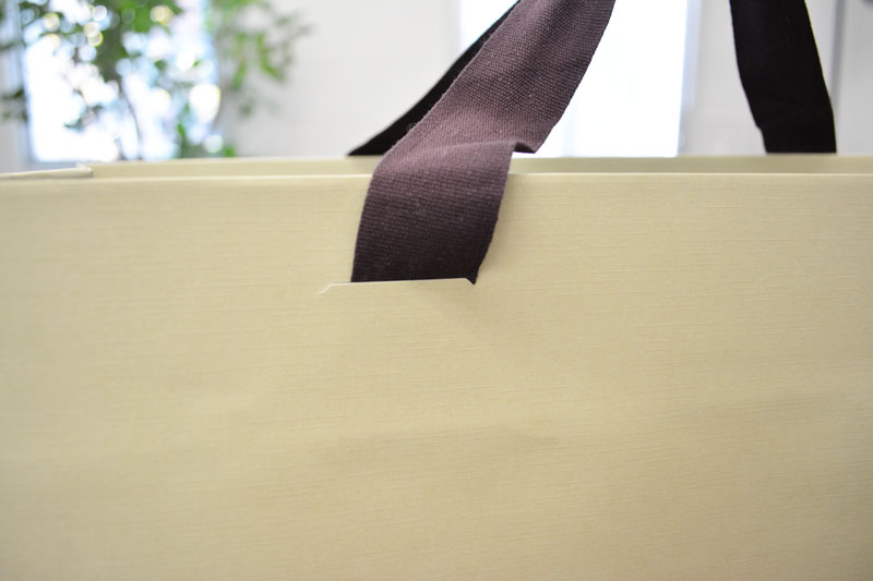 一見しただけではなかなか分かりませんが、色々な仕様がつめこまれた、こだわりの紙袋ですね!