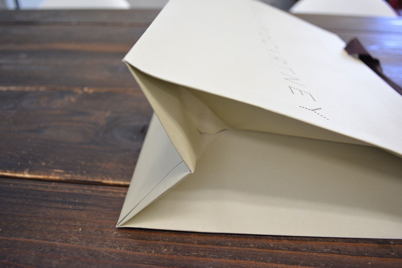 こうして見たところ、シンプルにロゴが配置された色合いも上品な紙袋です。