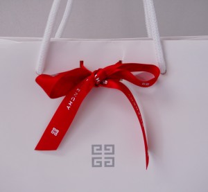 赤リボンのオリジナル紙袋2012年01月27日 こんばんは! 本日は赤リボンがきれいな オリジナル紙袋をご紹介します。 白地に赤リボンがとっても印象的ですね! ロゴ入りサテンリボン ボディはグロスPP貼りです。 ボディにスリットを開けて リボンを通しています。 後ろから見るとこんな感じ。 リボンがあるだけで 印象的なオリジナル紙袋が出来上がりますね!