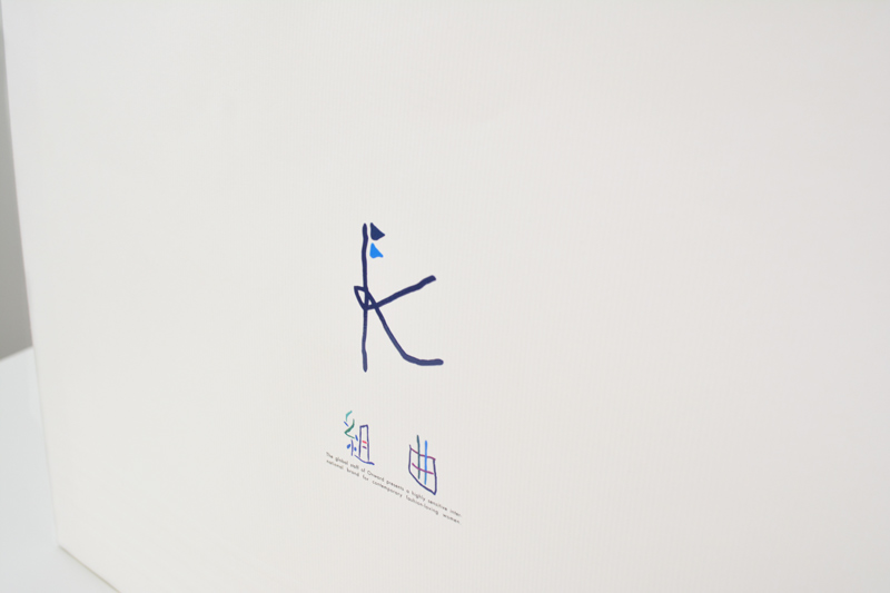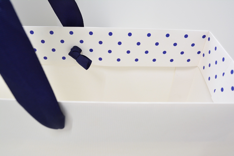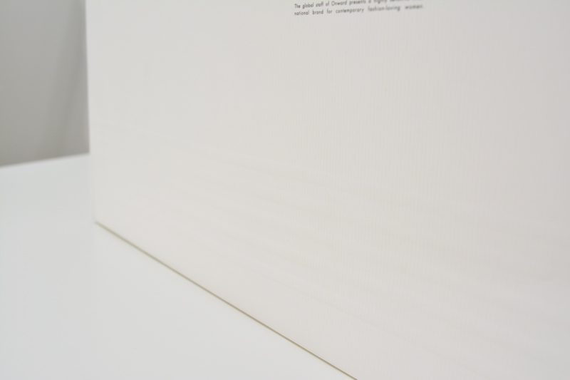 凝った仕様の組み合わせながらも上品・軽やかに仕上がっている紙袋ですね。