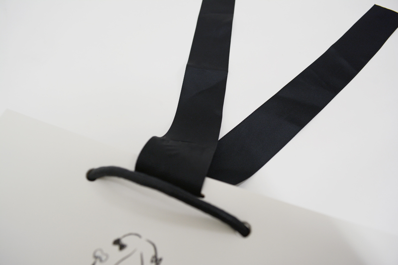 紙袋の口を止めているリボンはグログランテープという、特にアパレルでよく見られる