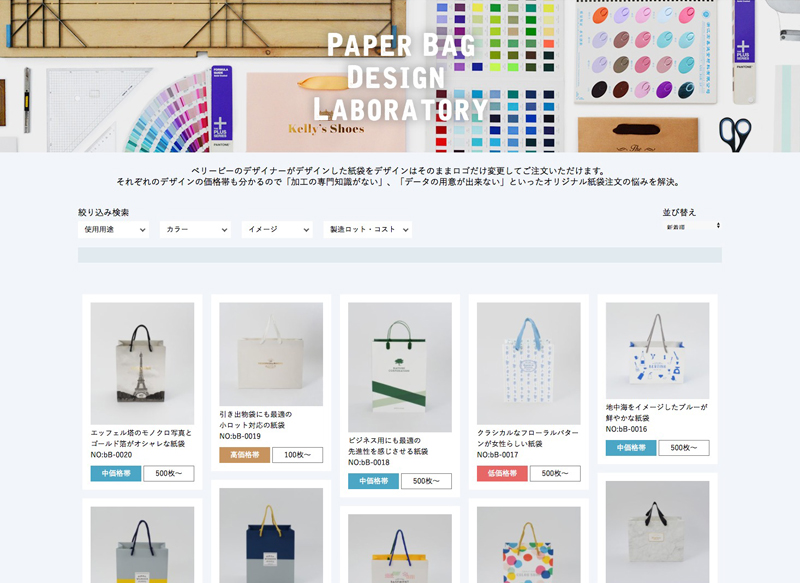 ページにはベリービーのデザイナーによってデザインされた紙袋がずらりと並んでいます。