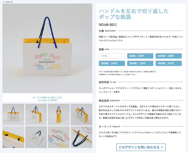 入ってみると、なんとアパレルブランドの商品ページのような紙袋の詳細ページが出てきました!