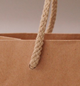 アメリカ発オリジナル紙袋2012年02月04日 こんにちは!! 今日の紙袋の紹介です! アメリカでモノを買ったときの 紙袋です。 クラフト紙にブラック1色で印刷。 ハンドルはパイレンロープです。 内側はこんな感じ。 海外のクラフト紙はこの紙袋のように 混ざりものがある紙が多いですね。 逆に日本のクラフト紙は混ざり物が少なくて キレイな紙質の傾向があります。 一見同じようなクラフト紙にも お国の違いを感じ取ることができますね。