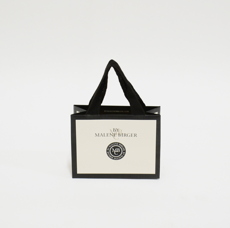 モノトーンの都会的なスタイリングが多いブランドで、このマスキュリン(男性的)な雰囲気の紙袋がぴったりです。