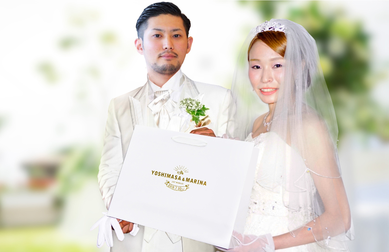 自分たちの名前が入った特別なオリジナル紙袋。