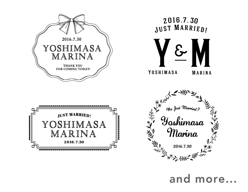 それでは特別に、弊社で続々開発中のブライダル用ロゴを一部、ご紹介しますね。