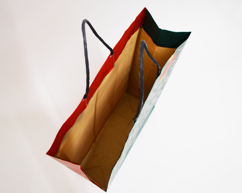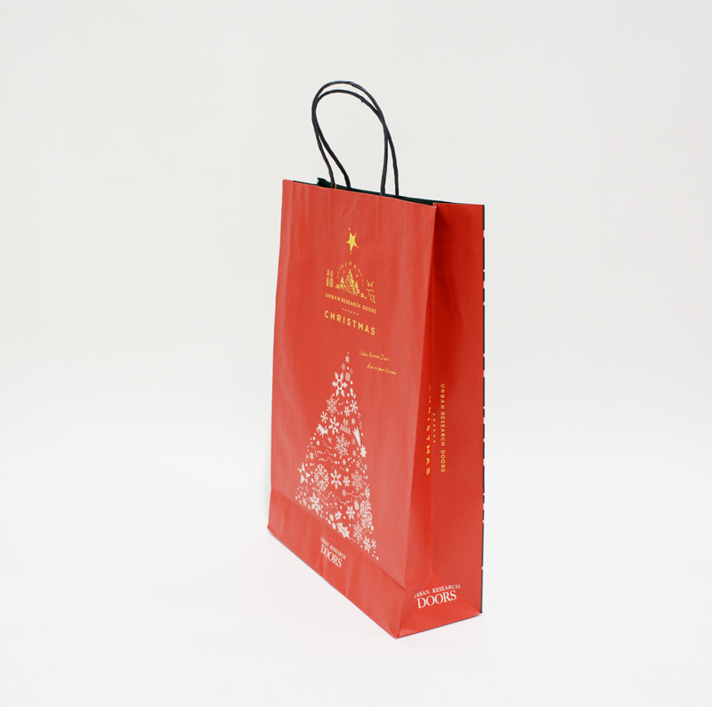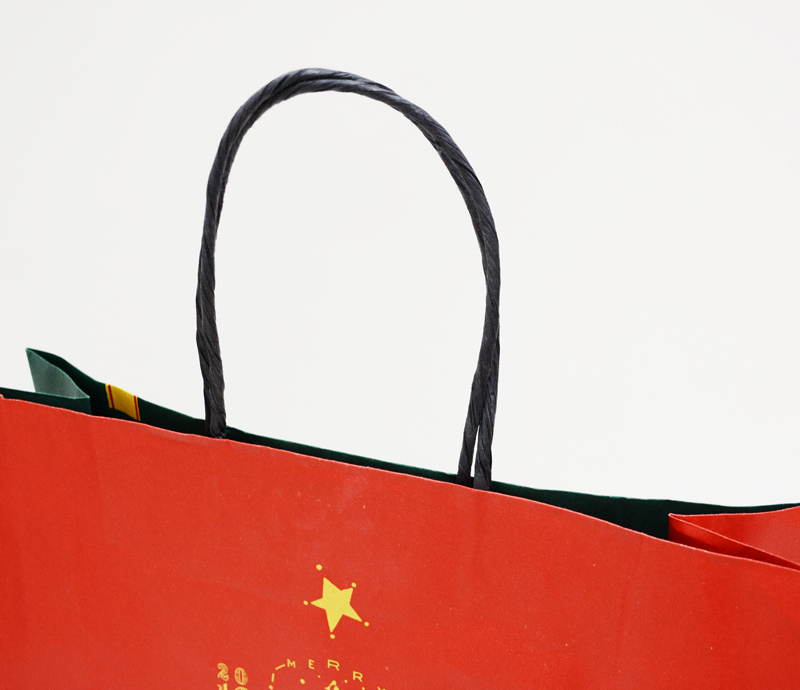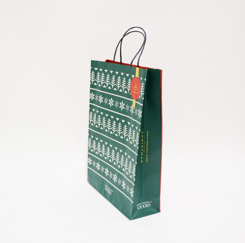 ちょっとひねった、少しクリスマスのテイストを出した紙袋(たとえばチャームがついていたり、