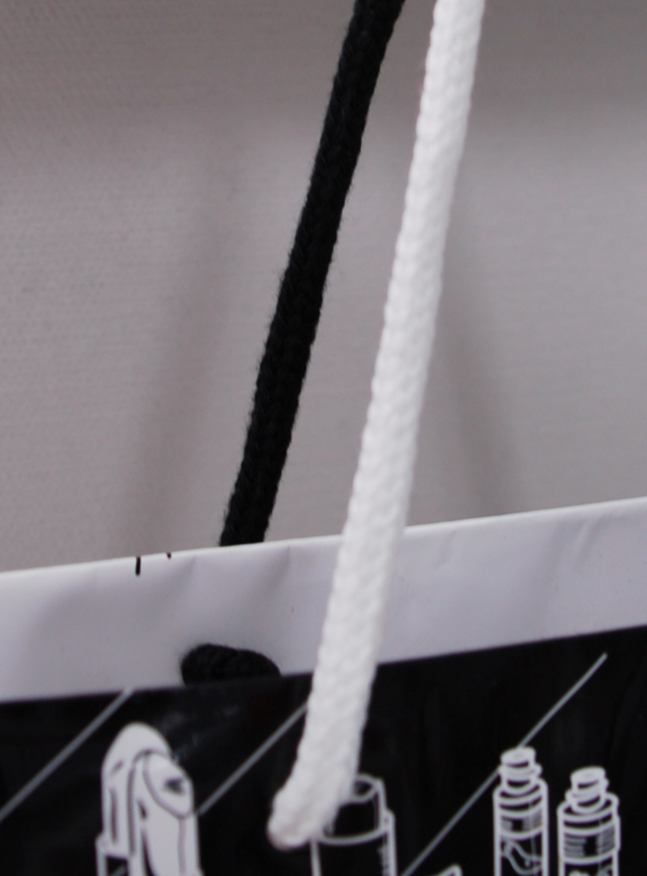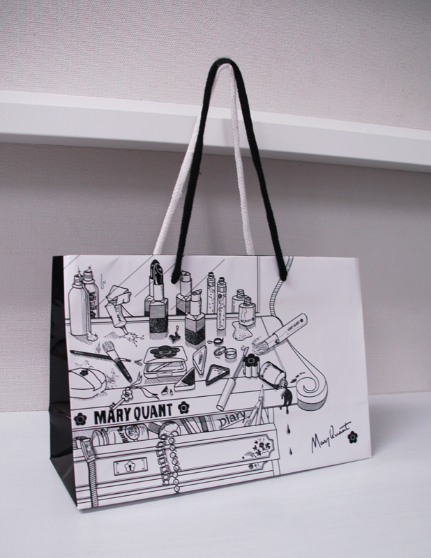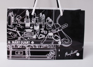 モノトーンがかっこいいオリジナル紙袋2012年02月09日 こんにちは。 本日のオリジナル紙袋のご紹介です。 ハンドルは2色の アクリルスピンドルを使用しています。 イラストはAB面で モノクロ反転です。 モノトーンがクールな印象の オリジナル紙袋ですね。