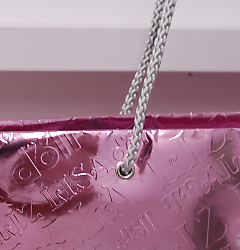 ギラギラ!オリジナル紙袋2012年02月15日 こんにちは。根来です。 今日の紙袋はギラギラです! まぶしい!自分が映り込むほどのギラギラ。 ハトメもハンドルもシルバー! アルミ蒸着紙にピンクで印刷しています。 さらにロゴで空押し!! ズレもなく、精巧に作られています。 買い物をしてこんな紙袋に入れてもらえると テンションがあがります!! 紙袋って大切なCSツールですね!