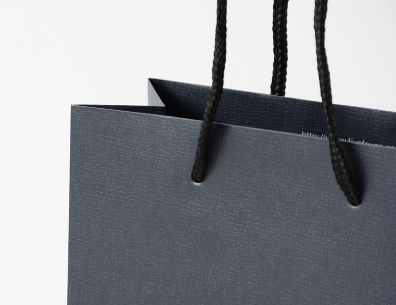 一見、ネイビーとシルバーのシンプルな色合いの紙袋です。