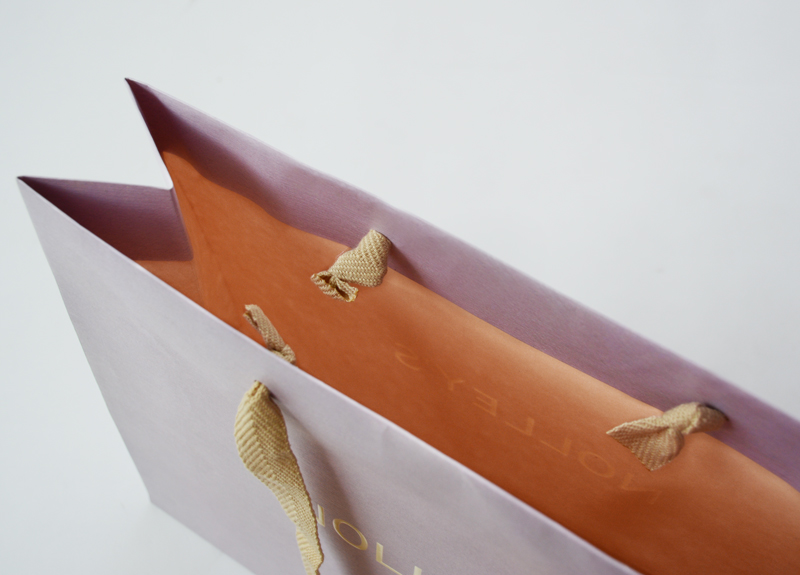 紙袋の内面はベージュです。外面と内面でギャップを作るのもひとつの手ですが、