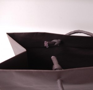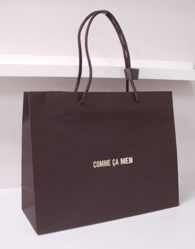 シックなオリジナル紙袋2012年02月19日 こんにちは、根来です。 さっそく今日のオリジナル紙袋です。 太めのハンドルが特徴です。 ロゴはシルバーの箔押し。 シンプルで落ち着いた印象の オリジナル紙袋です。