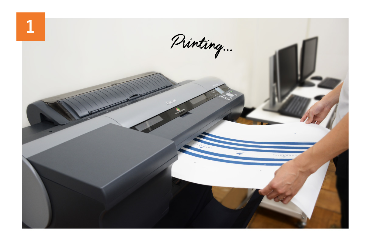 大型プリンターで出力しているので、実際に工場で本製造する仕上がりとは色が異なる点、