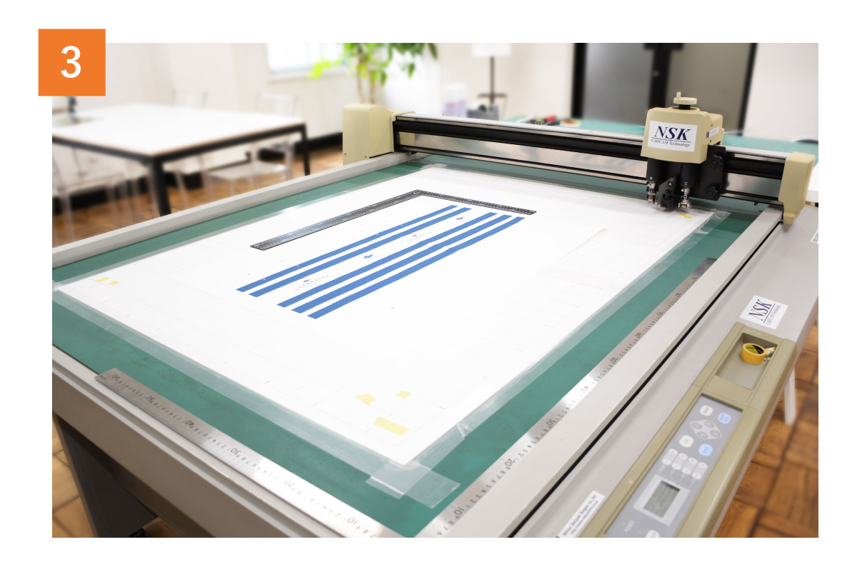 印刷したデザインデータと連動して、カットはもちろん折り目までつけてくれるすごい機械です!