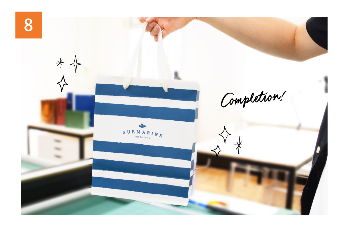 はじめの印刷した状態からは想像がつきませんでしたが、きれいな紙袋が出来上がりました!