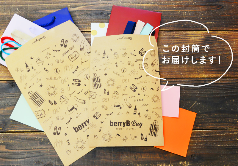 (※かなり大きいサイズの紙袋を送る場合は、残念ながら封筒に入りきらないので無地の封筒でお送りしています。。。)
