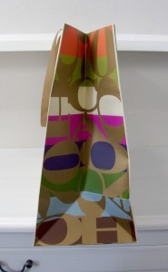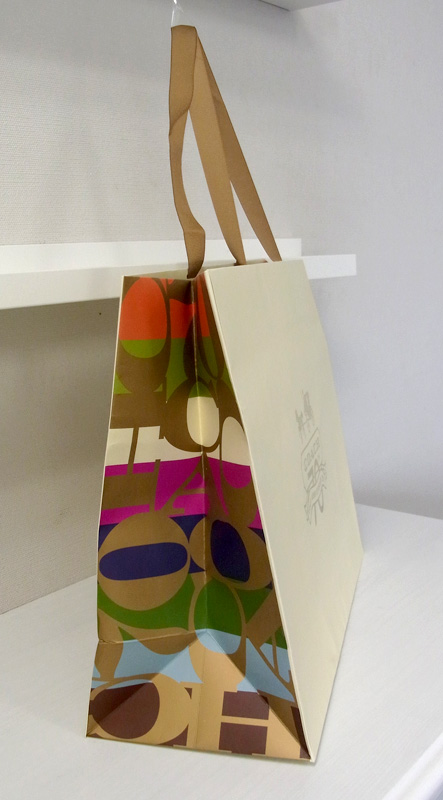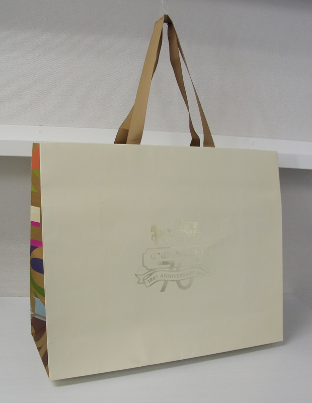 “アニバーサリー”オリジナル紙袋2012年02月25日 こんにちは、ベリービーの根来です。 今日、明日は"アニバーサリーもの"の オリジナル紙袋をご紹介します! ハンドルはグログランテープです。 グログランテープを使うと平紐より 上品な印象になりますね。 口折り部分にはロゴ。 ロゴは箔押しです。 サイドはこんな感じ。 切り返しがカッコいいですね。 周年記念にふさわしい、 とっても素敵なオリジナル紙袋ですね! お気に入りのひとつです。