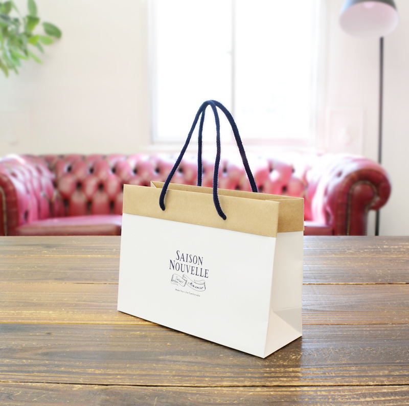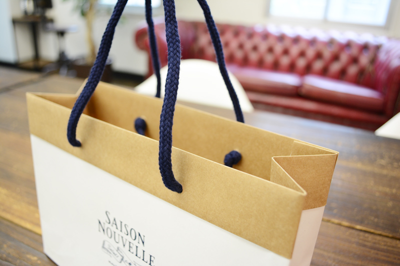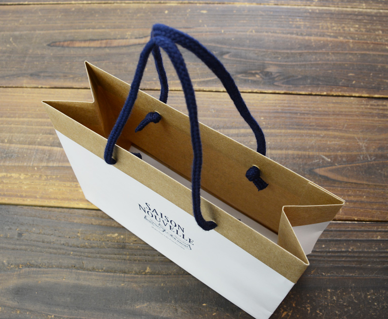 外側の白と内側の茶色の組み合わせがオシャレな紙袋に仕上がっています。