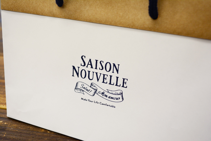 ロゴはネイビーの箔押し。ハンドルのネイビーと合わせて、爽やかな印象です。