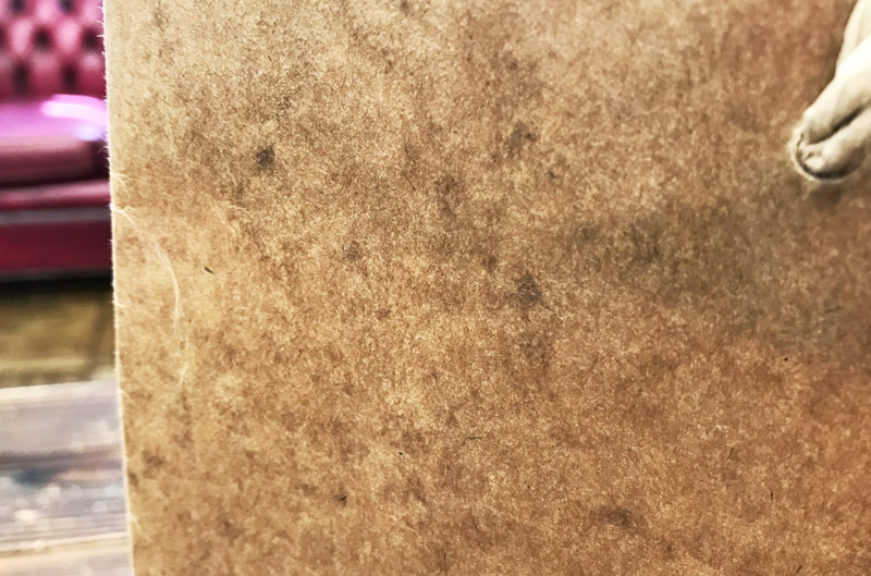 この紙袋は革製品のお店で使われているのですが、それらしいヴィンテージ感が出ています。
