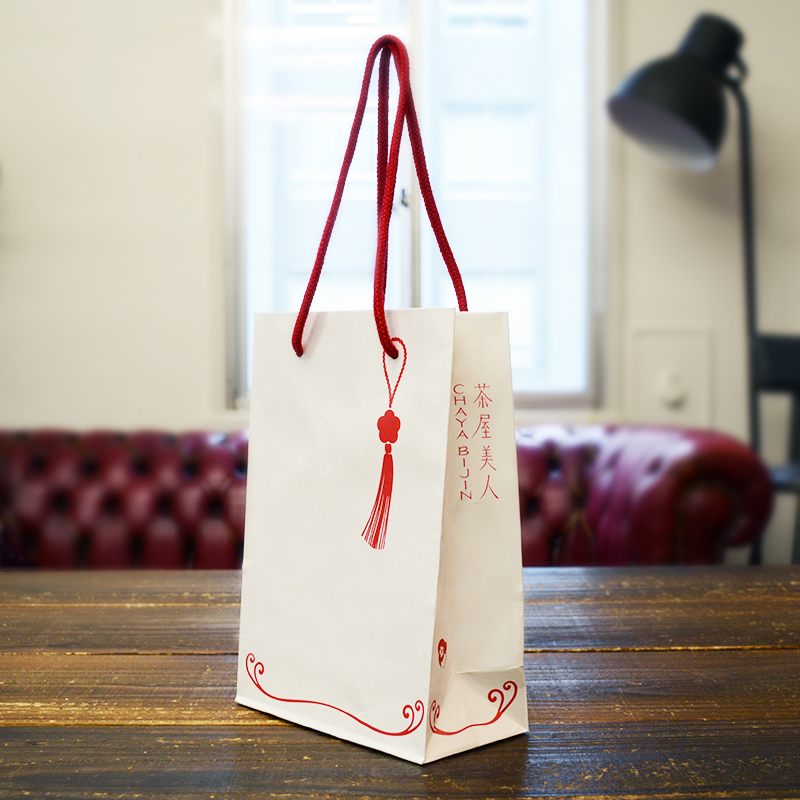 今回はまるで飾りがついているかのようなデザインが面白い、白クラフトの紙袋を紹介します。