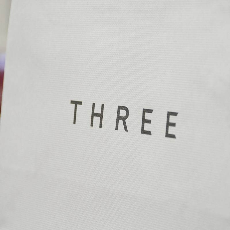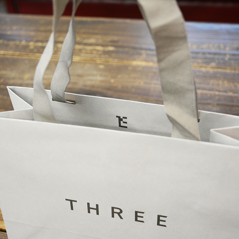 コスメブランドの紙袋です。全体的に薄いグレーで仕上がっていますね。