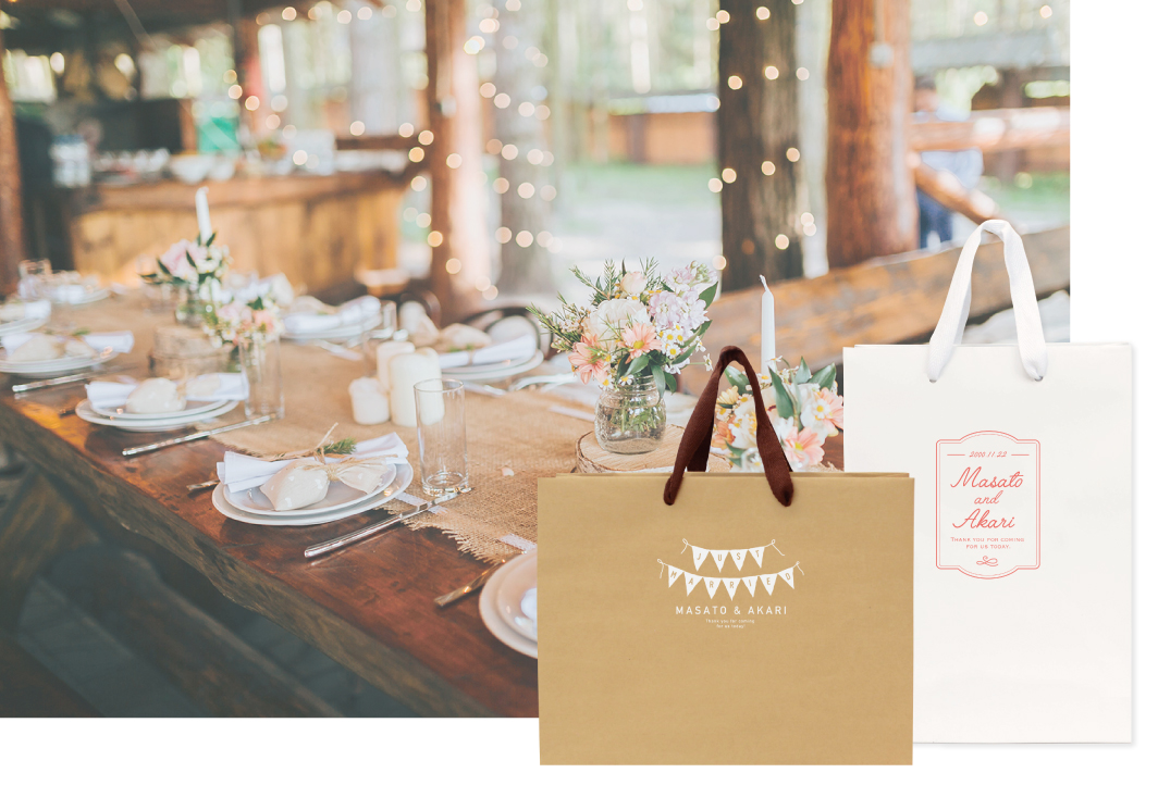 なかでも、オリジナルの引き出物袋はとても人気があります。