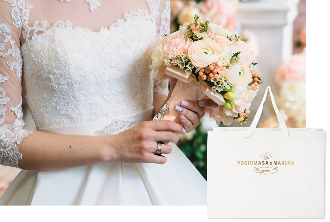 そんな方々に向けて、ベリービーバッグではウェディング用のオリジナル紙袋を100枚からご提供させて頂いております!