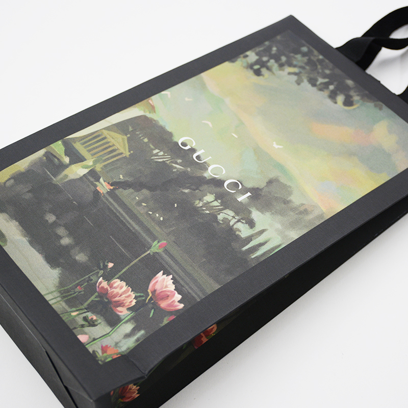 紙袋全面にクオリティの高い絵画が印刷されてる特徴的なデザインからは、ハイブランドならではのこだわりを感じます。